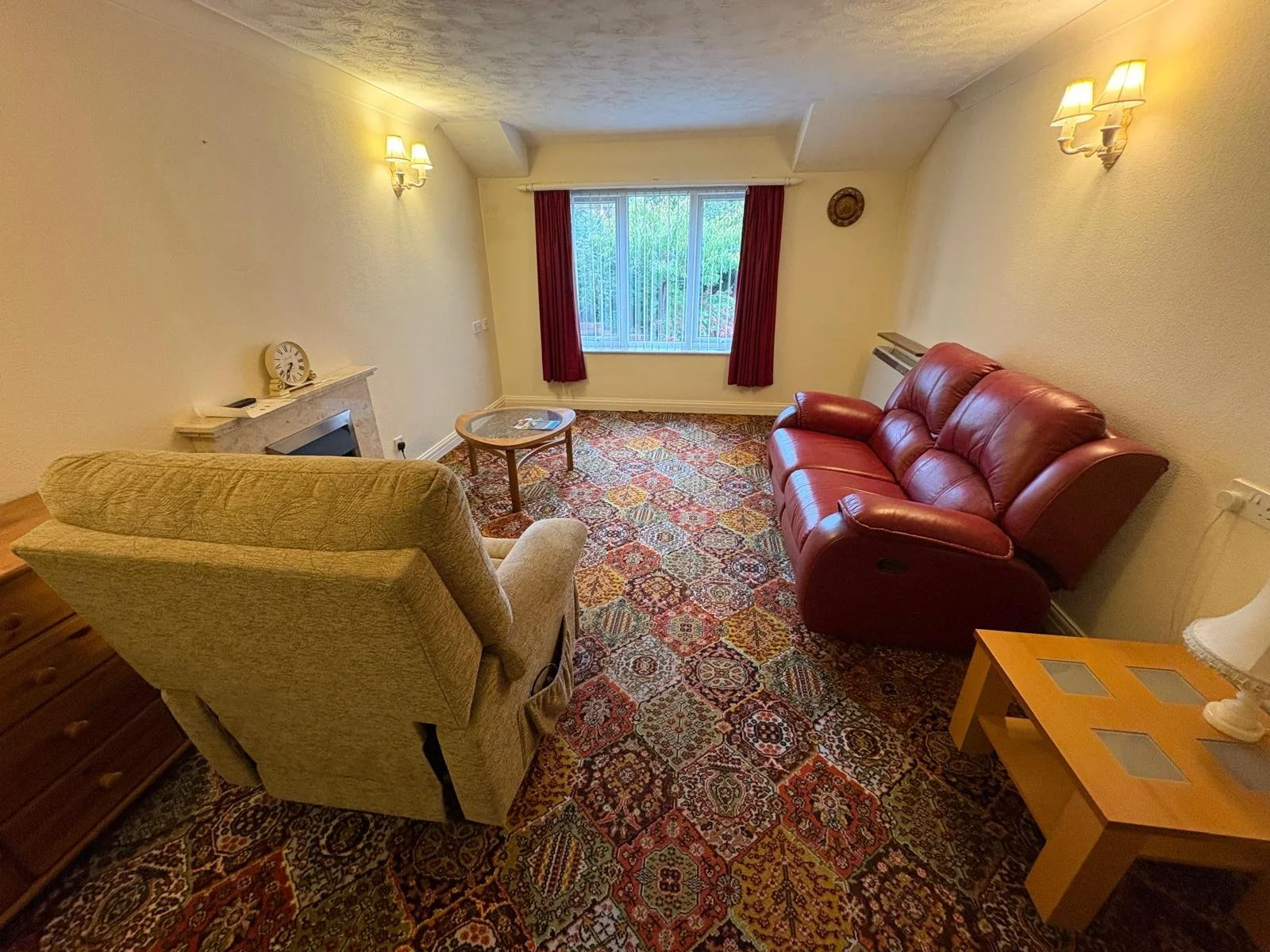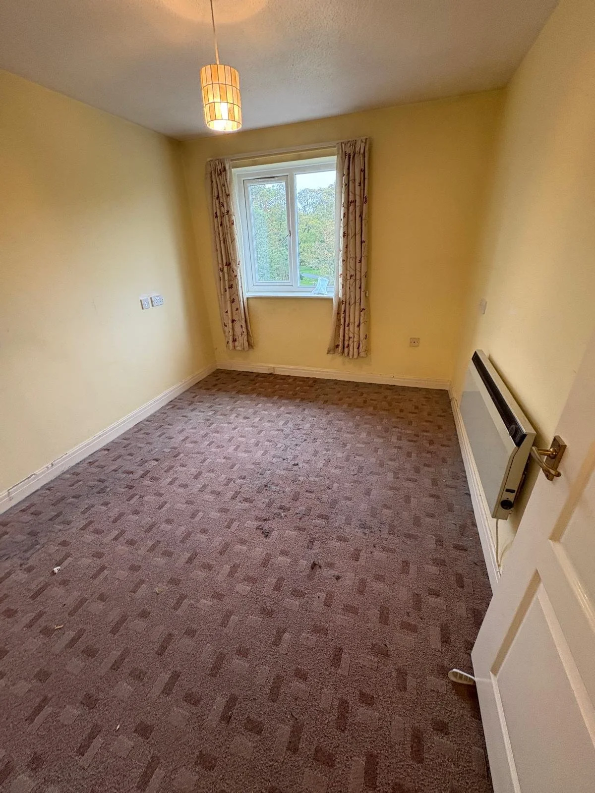 Redecoration, new carpet, warm-white wall light, and matching curtains.